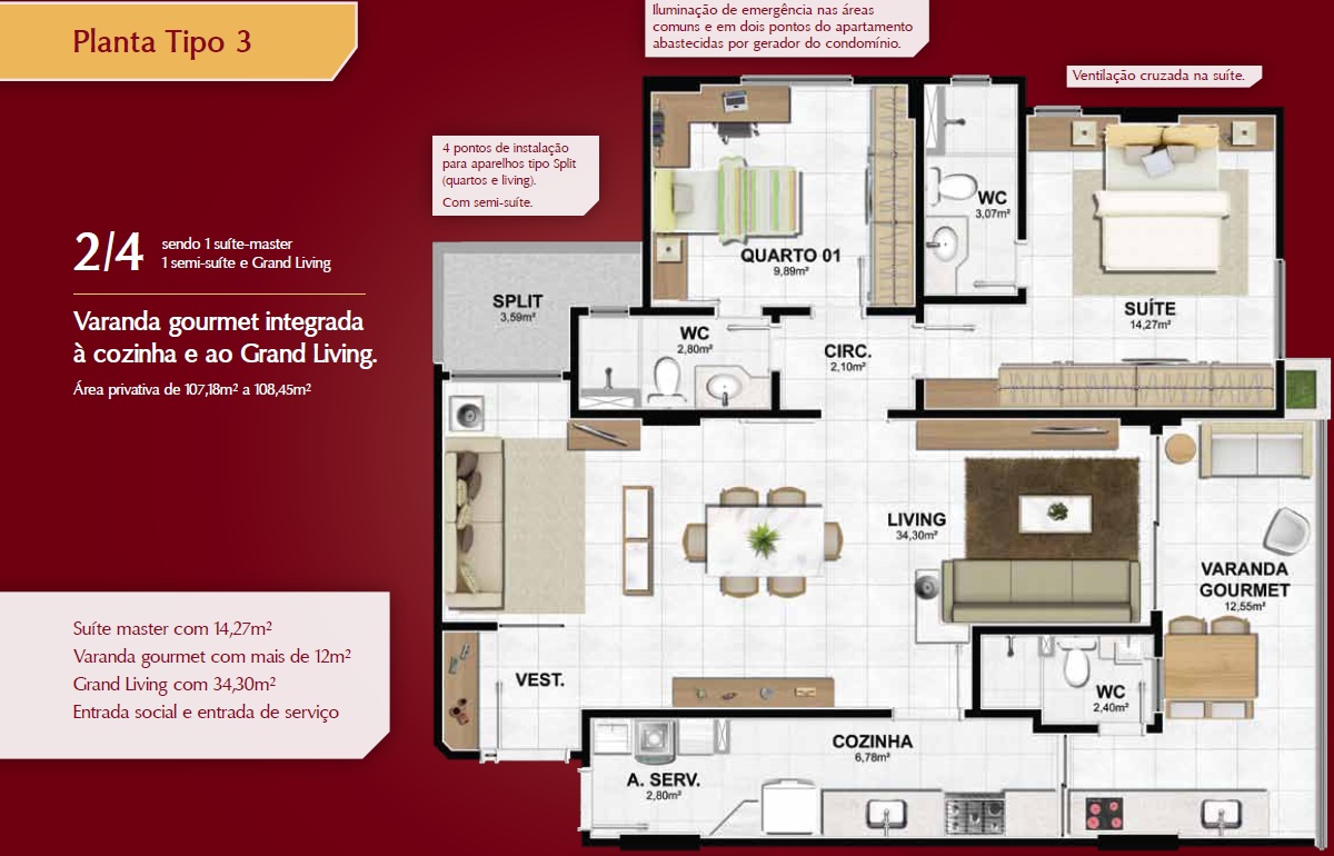 Existem muitas coisas que podem voltar atrás. O tempo não. Foi assim que o El Viso Contemporâneo foi idealizado: para atender as necessidades e anseios de vida moderna, de modo que os ambientes amplos e integrados lhe ofereçam comodidade e lazer, valorizando os seus momentos e reconhecendo a importância do seu tempo. Com apartamentos de até 108,45 m² e 4 opções de planta que combinam com você, o El Viso possui ampla área de lazer equipada, numa localização privilegiada próximo à praia, no ponto mais alto da Atalaia. El Viso Contemporâneo, seu tempo, à sua maneira.
